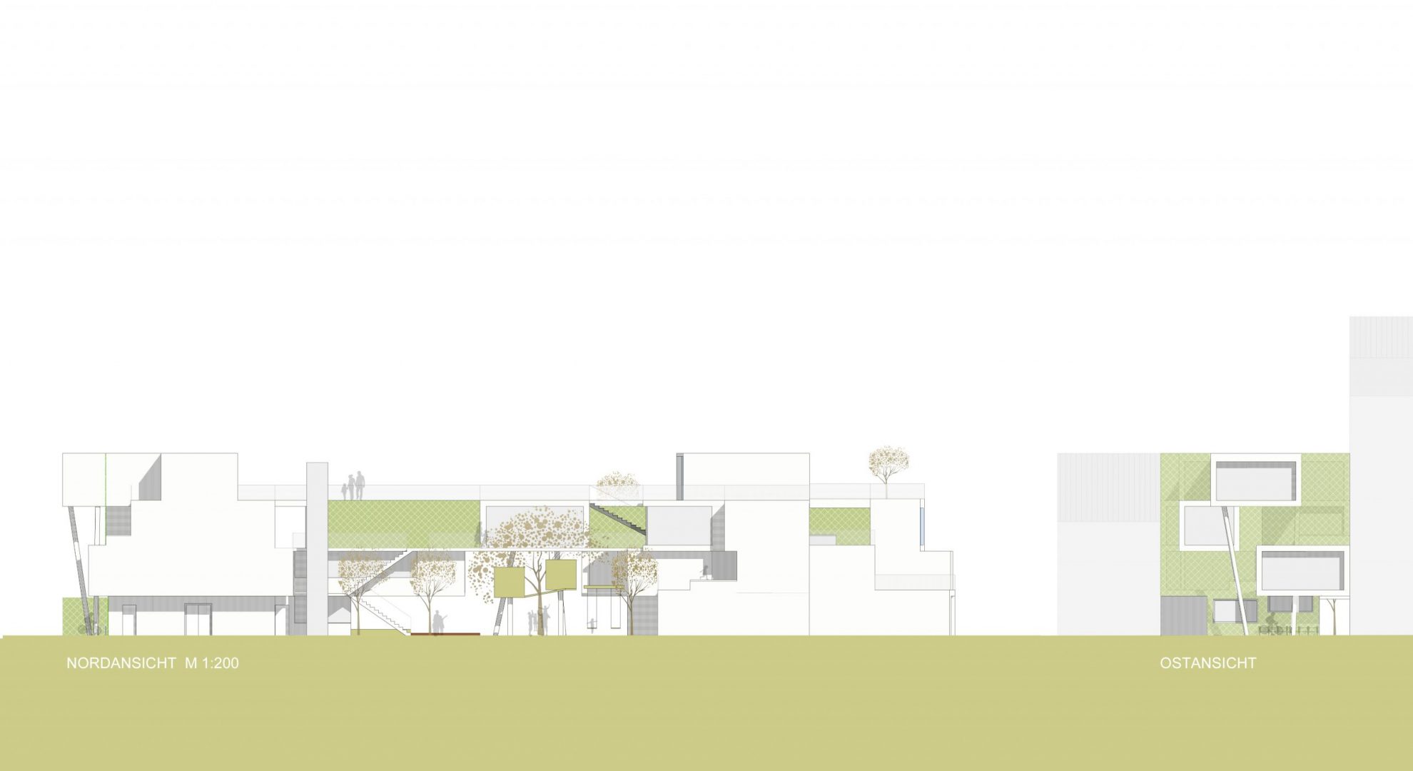 The ground floor and the 1st upper floor are maisonettes, which offer many advantages in terms of different orientations of the rooms, as well as other qualities in connection with floor openings for double room height. The third floor will be accessed through external walkways, which are intended to raise the interest of the children through the routing and also to build up an connection to the outdoor space.
