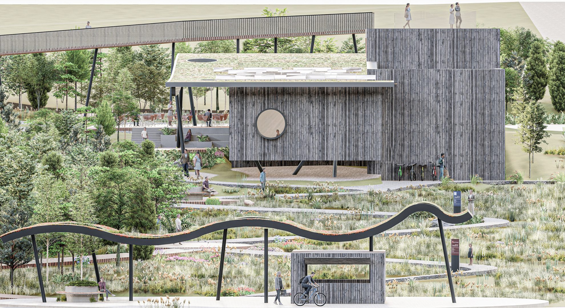 Das Naturparkgebäude besteht aus zwei Hauptteilen: Dem “Funktionsregal” mit allen Infrastruktureinrichtungen als Rückgrat der Anlage modular erweiterbar und dem “Naturparkspace”, einem großzügigen Multifunktionsbereich, der die Funktionen Empfang/Info/Shop, Ausstellung, Gastronomie und Veranstaltung beherbergt. Alle Bereiche des Gebäudes sind durch den zentralen Lift barrierefrei erreichbar, die Büros sind zusätzlich über die externe Stiege erschlossen.